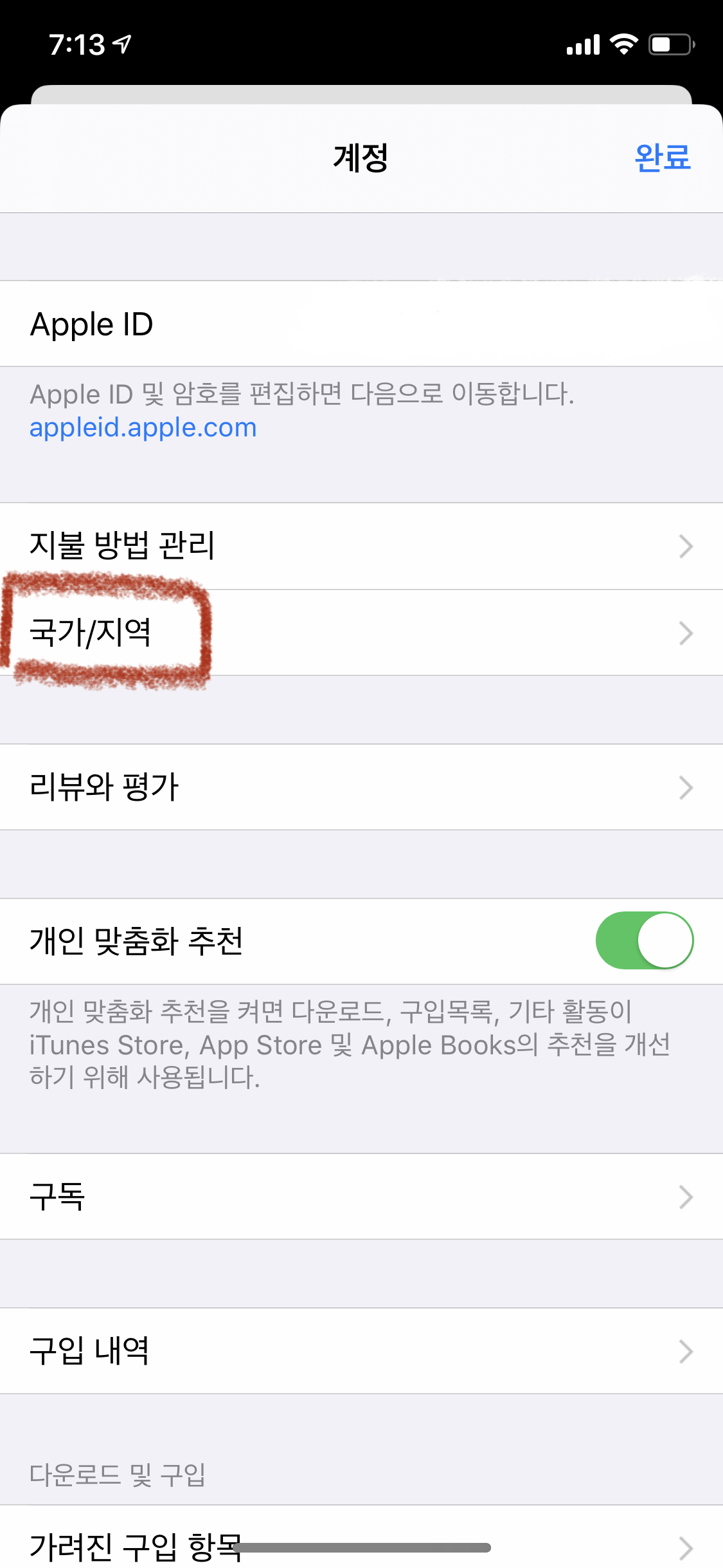 반대로 다시 한국 계정으로 돌아올 때도
