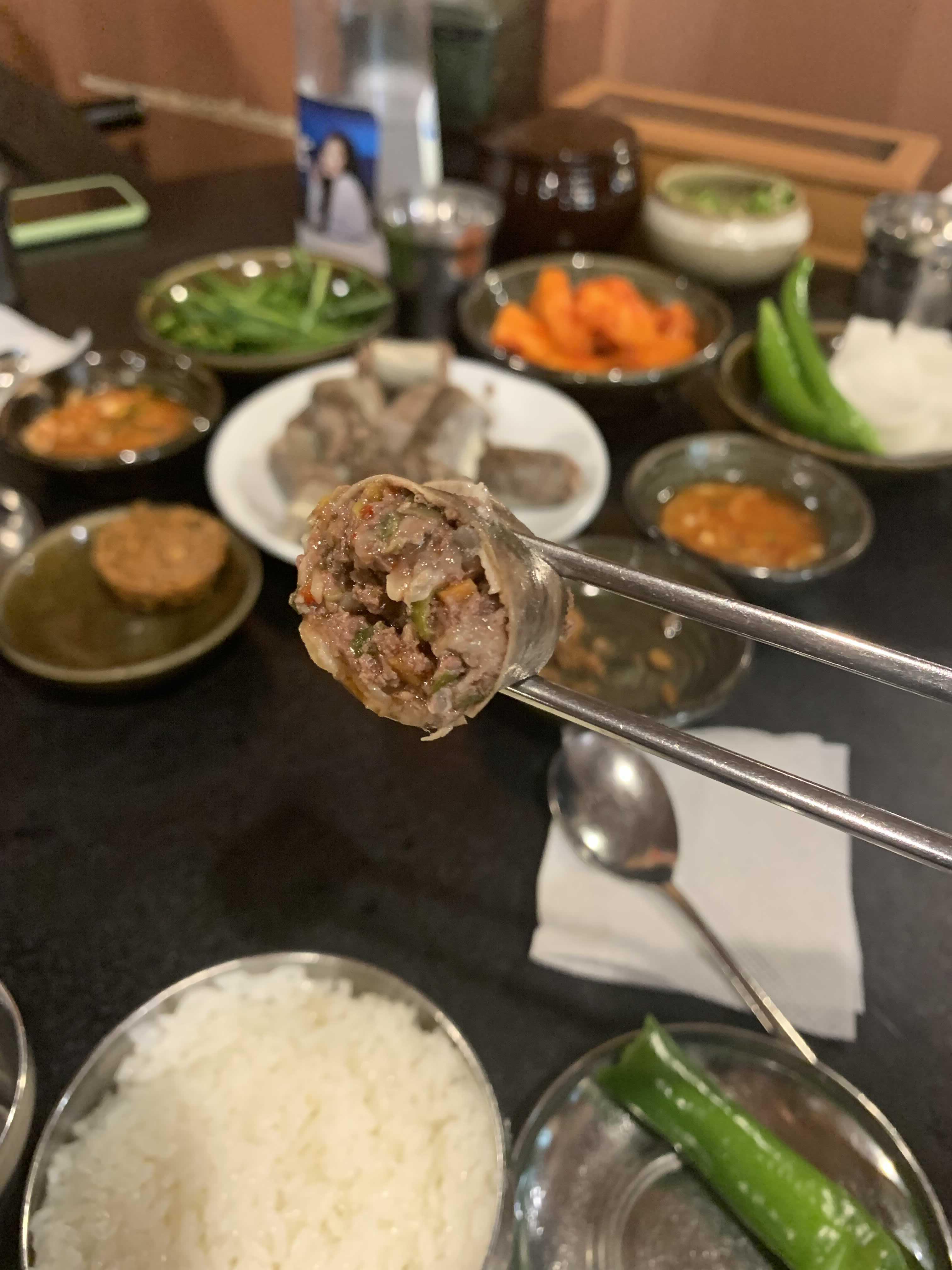 굶주렸던 우리들은 국밥 나오기 전 먼저 토종순대로 요기를 했다! 촉촉한 육즙이 가득 들어있는 바람직한 토종 순대였다.. 가격은 한그릇 만원